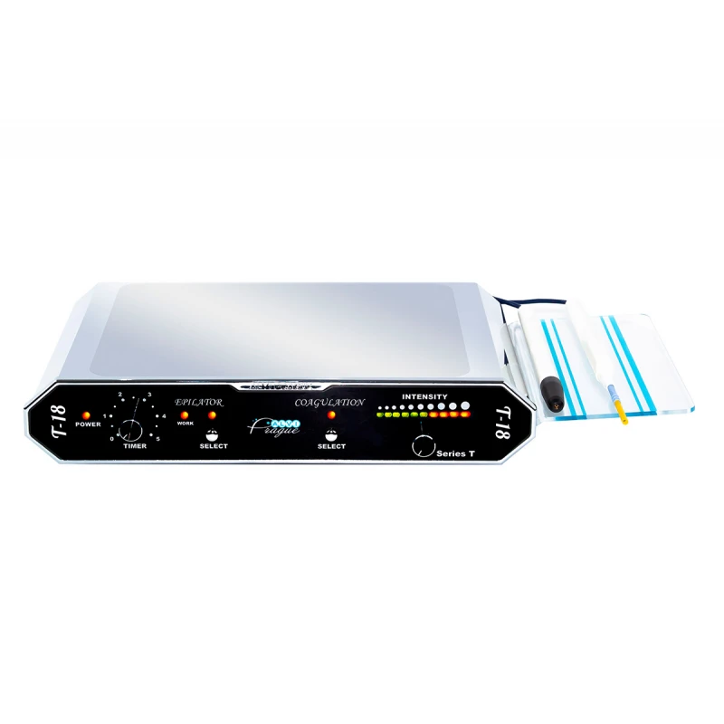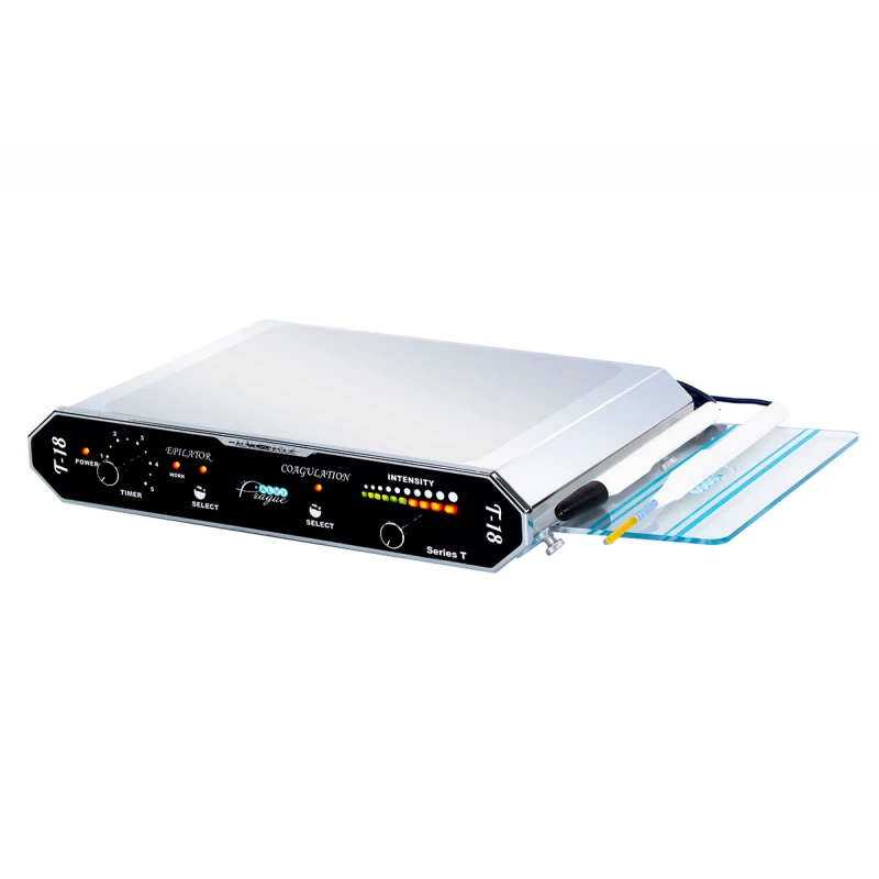 La Máquina de depilación por termólisis y electrocoagulación T-18 es un equipo profesional multifuncional diseñado para la eliminación permanente del vello no deseado mediante tecnología de termólisis y para la realización de procedimientos de electrocoagulación en estética y dermatología estética.