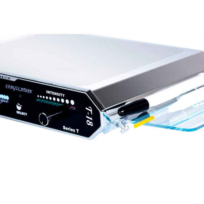 La electrocoagulación es un procedimiento estético que utiliza energía eléctrica controlada para coagular tejidos cutáneos superficiales. El equipo T-18 incorpora un manípulo específica para electrocoagulación, diseñada para garantizar precisión y comodidad durante el tratamiento.