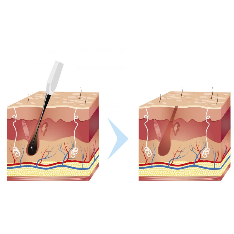 - Epilación: destruye el folículo piloso (como en la electrólisis, el láser o la luz pulsada), ofreciendo resultados a largo plazo o permanentes.