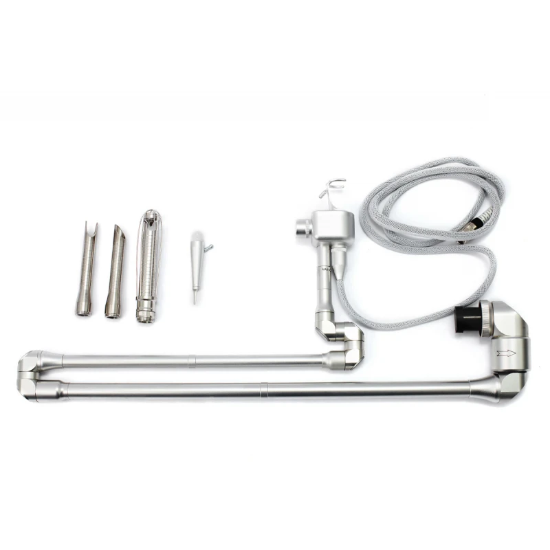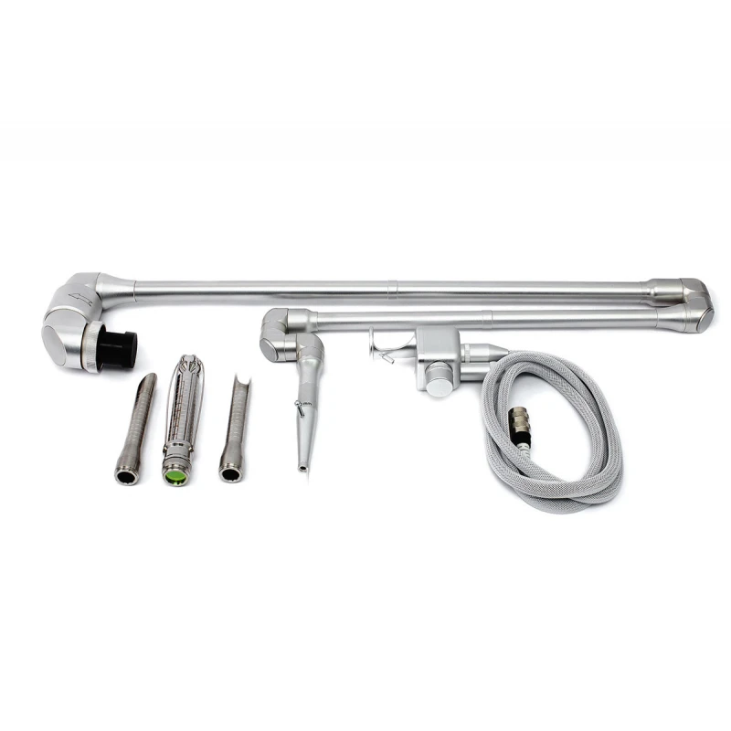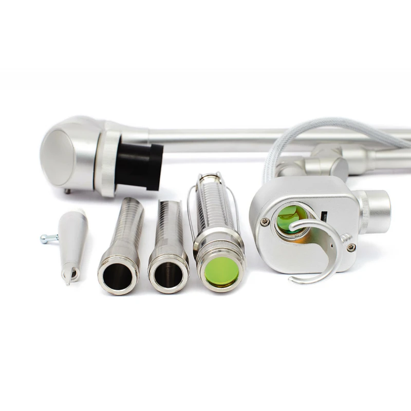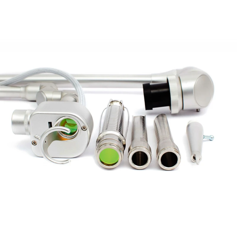 La transmisión de radiación del generador a la pieza de mano se realiza a través de una guía de ondas ópticas flexible de siete curvas.