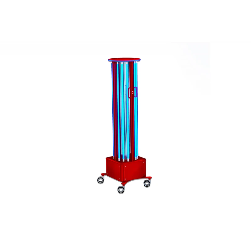 - cuerpo ergonómico y ruedas para facilitar el transporte del irradiador bactericida.